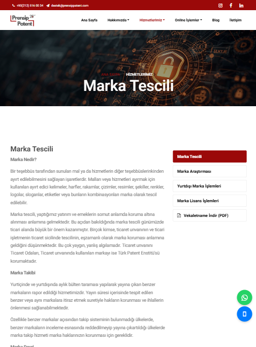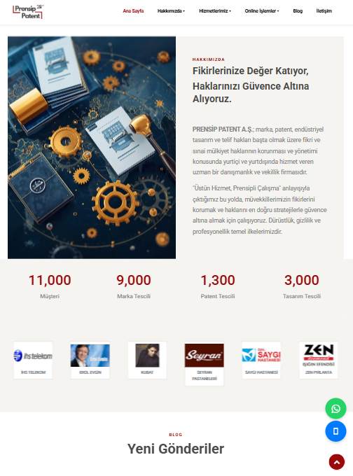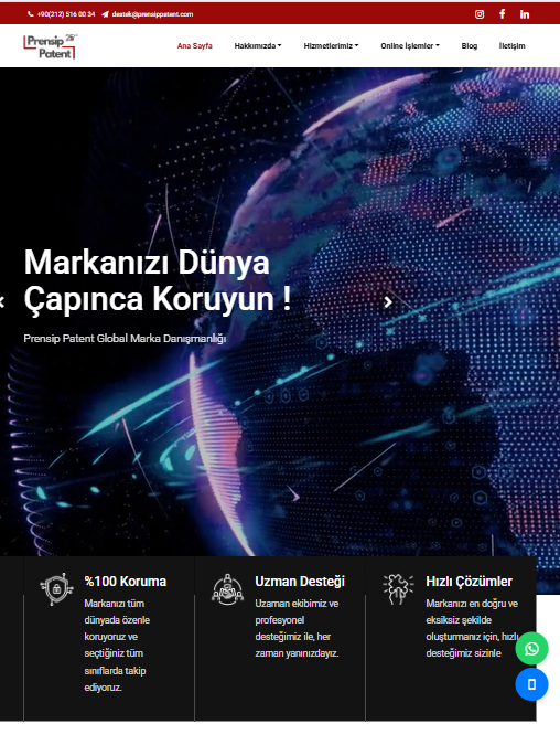 Fıkri Sinai Mülkiyet Hakları alanlarında 25 yıllık uzmanlığı ile öne çıkan, Prensip Patent A.Ş. Kurumsal Web Sitesi