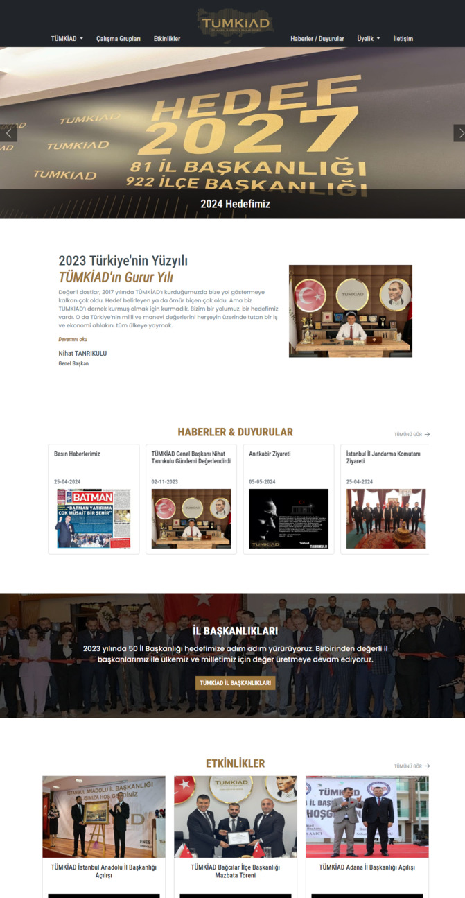 Türkiye' nin yeni ve dinamik Sivil Toplum Kuruluşu olan ve her geçen gün il başkanlığı sayısını arttıran TÜMKİAD Kurumsal Web Sitesi